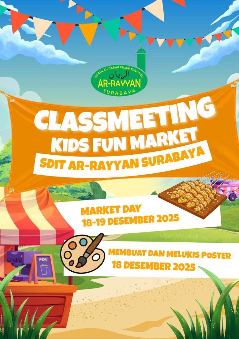 Surabaya – SDIT Ar-Rayyan Surabaya menggelar rangkaian kegiatan pasca-ujian akhir semester yang bertajuk “Class Meeting” dan “Kids Fun Market”. Acara ini berlangsung meriah selama dua hari, yaitu pada tanggal 18 hingga 19 Desember 2025, dengan tujuan memberikan hiburan edukatif sekaligus melatih jiwa kewirausahaan dan kreativitas para siswa.
